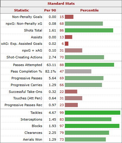 Doté d'une science du placement et d'une lecture de jeu de haut niveau, il excelle dans l'anticipation des trajectoires.