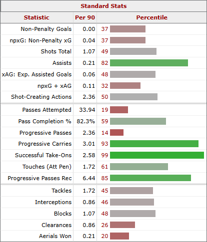 Conclusion : Ce match laisse l'impression d'un ailier remuant repositionné dans un rôle de piston qui ne semble pas totalement lui correspondre, bridant son explosivité offensive sans pour autant garantir une sécurité défensive absolue.
